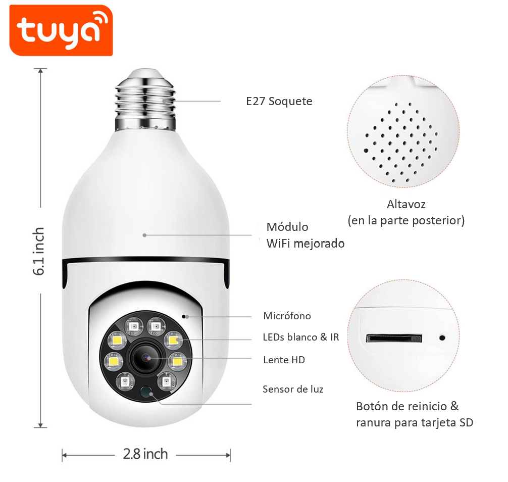 Cámara Ampolleta Inteligente Wifi 3mp Tuya Smart/smartlife